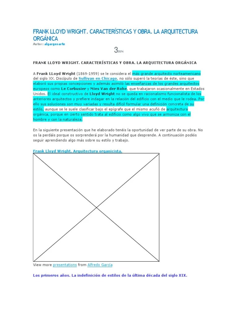 Frank lloyd wright foundation president and ceo stuart graff identifies how frank lloyd wright's organic architecture translates to the call for a more sustainable built environment. Frank lloyd wright (eu, 1867) tuvo una visión orgánica sobre la filosofía de la arquitectura que lo colocó como uno de los maestros de la arquitectura del siglo xx. La obra del genial arquitecto norteamericano f. Después de abandonar sus estudios en ingeniería, frank lloyd wright comenzó su carrera como arquitecto en solitario. Por arquitectura orgánica debemos entender todas aquellas manifestaciones arquitectónicas que tratan de adecuarse y aliarse con la naturaleza. Frank lloyd wright foundation president and ceo stuart graff identifies how frank lloyd wright's organic architecture translates to the call for a more sustainable built environment. Creía en el poder de conectar la arquitectura con sus habitantes, afirmando una vez que «la arquitectura es la madre de todas las artes.